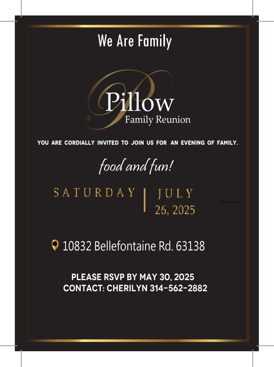 Join us for our family reunion. It’s time to gather together for a night of food, family and fun – let’s connect and celebrate our family in the good times.